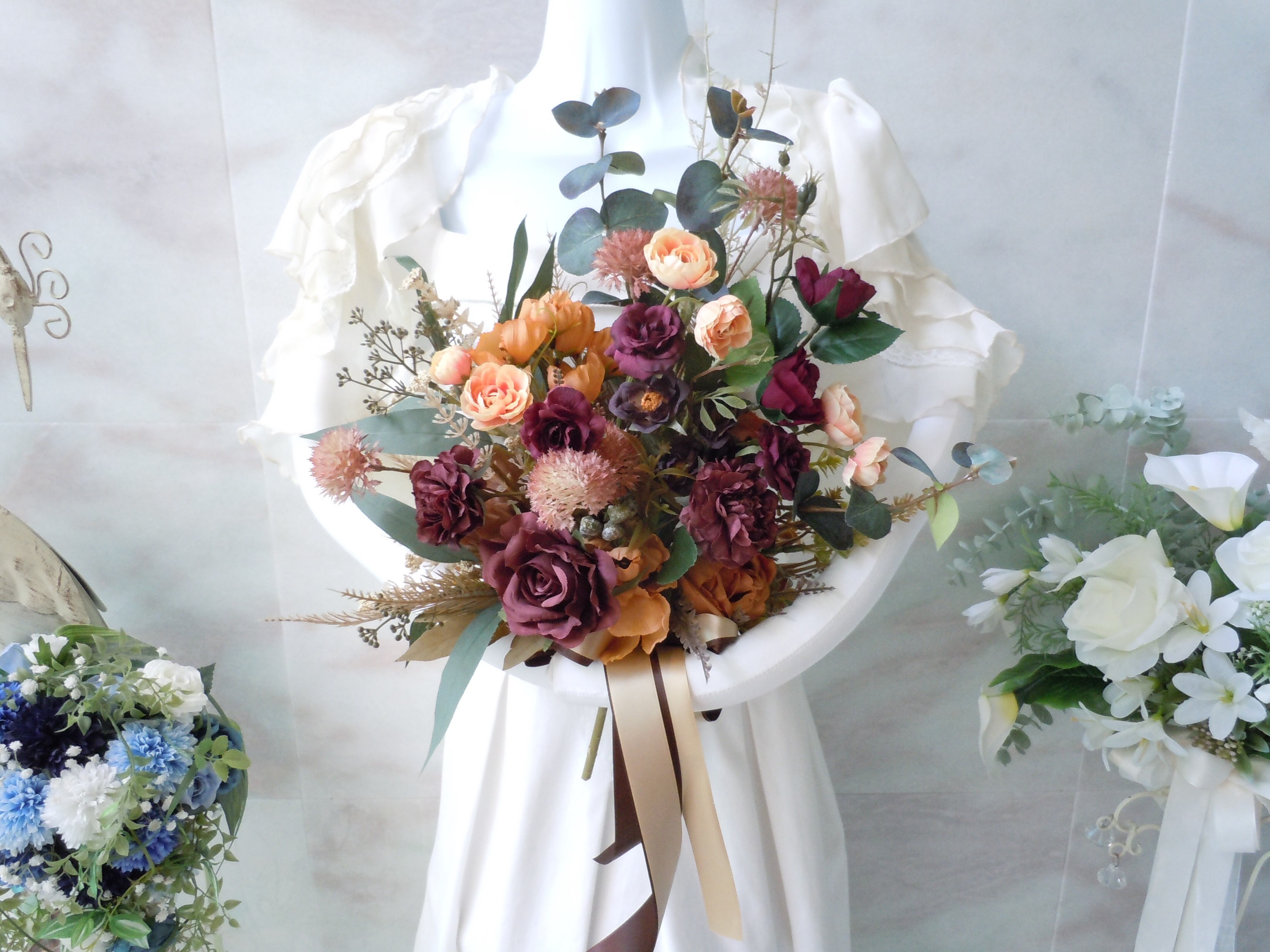 ブラウンカラーの花々が織りなす深みのある色彩が、特別な瞬間を引き立てます。