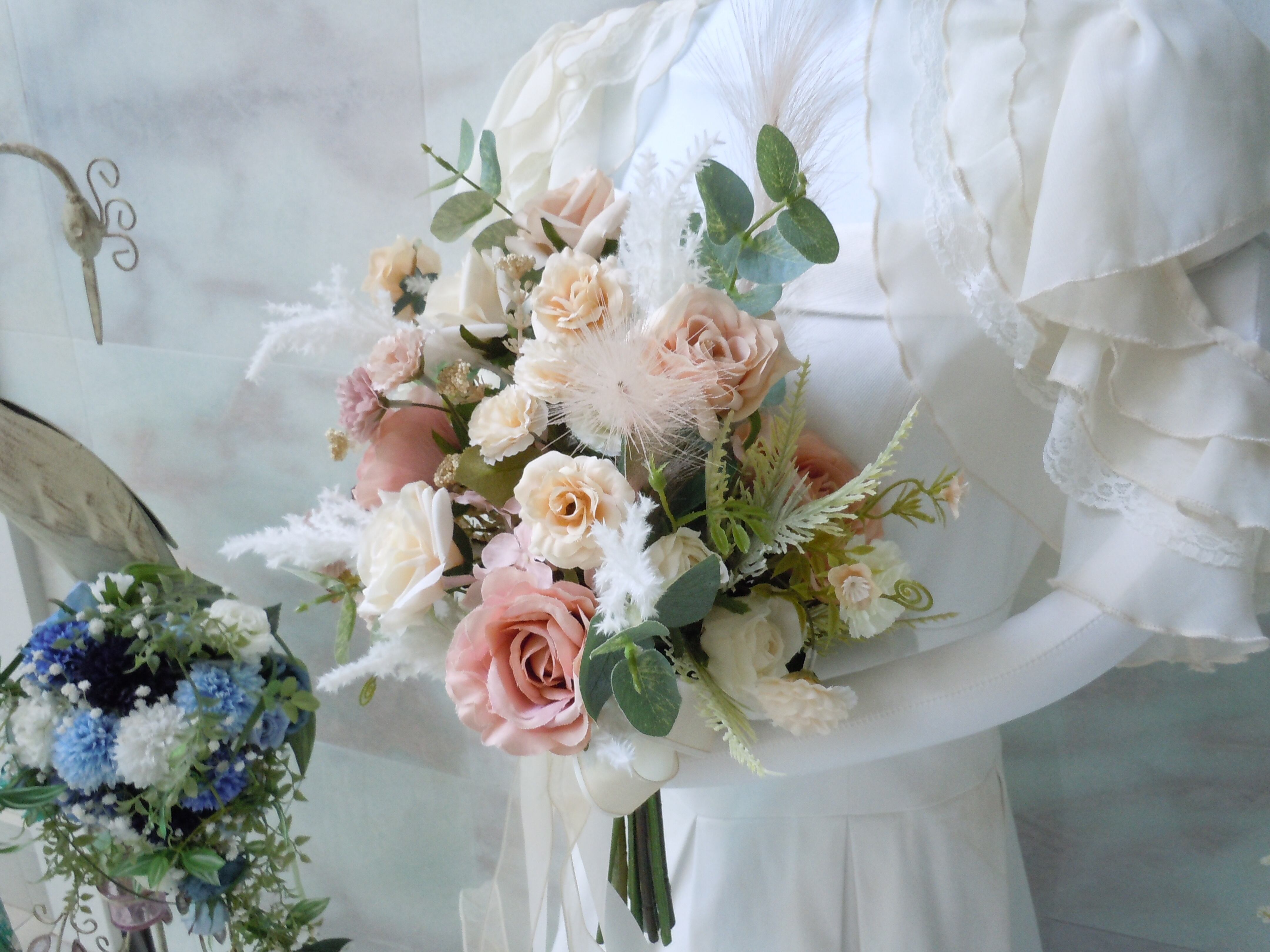 繊細で可憐なヌーディーカラーのローズのブーケです。
