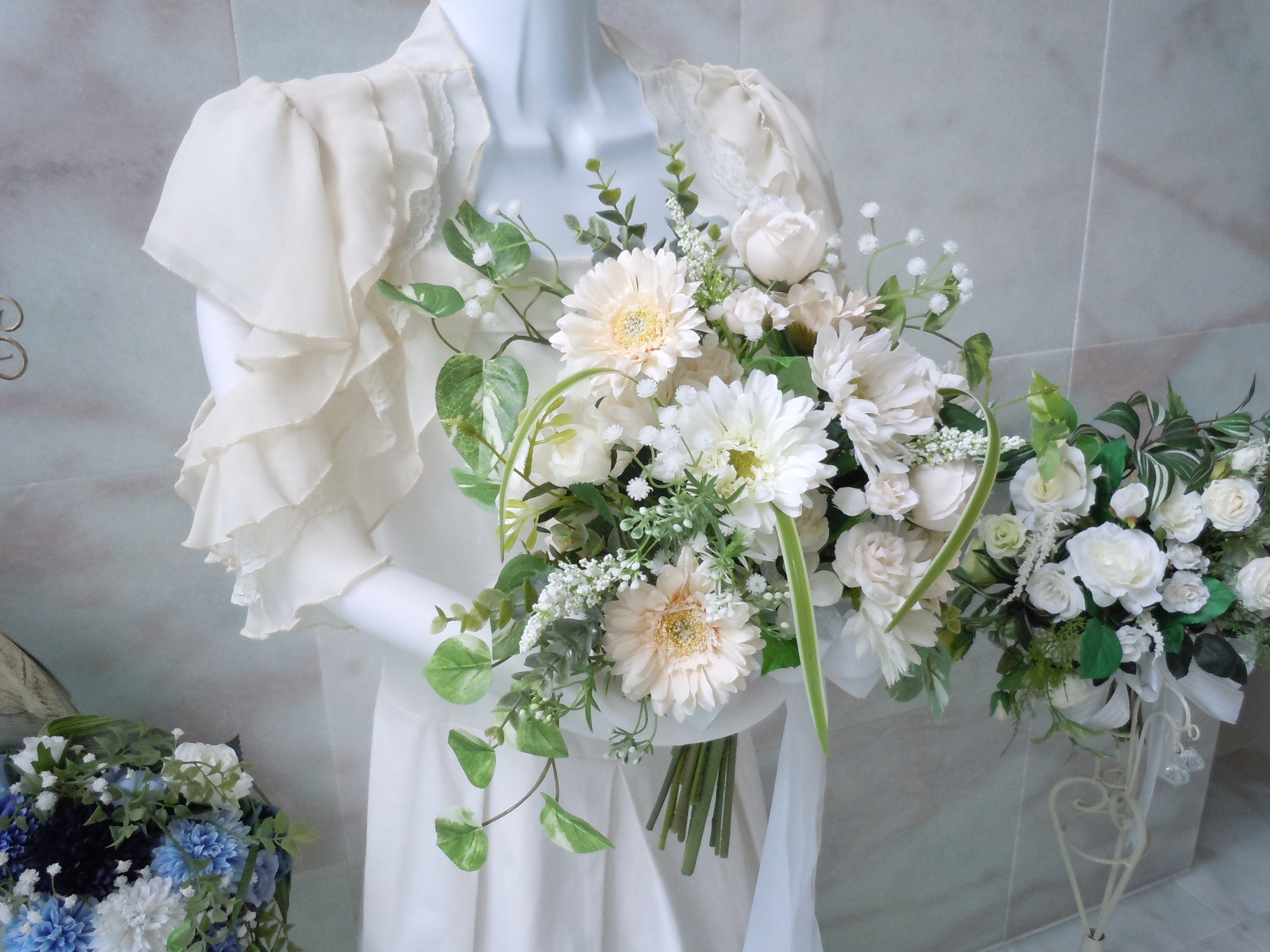 ◆可愛いガーベラのクラッチブーケ*ホワイトブーケ◆ナチュラル ガーデンウエディング 前撮り ウエディングブーケ フラワーアレンジ 花束*アートフラワー 造花 格安