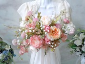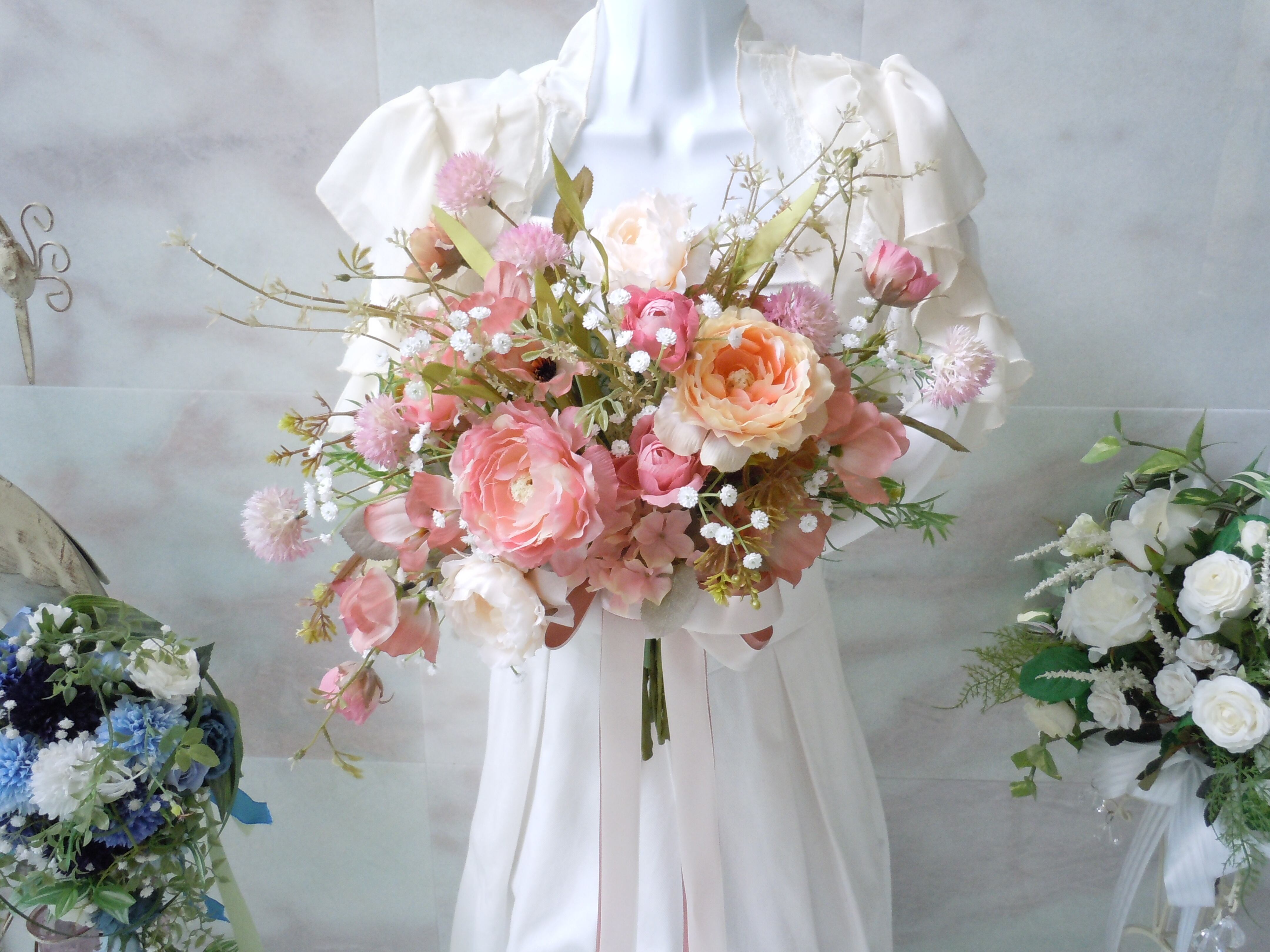SALE 特価中!◆可愛いラナンキュラスとカスミ草のシャワーブーケ◆パステルカラー パステルピンク クラッチブーケ ウエディングブーケ 前撮り ガーデンブーケ 花束 アートフラワー
