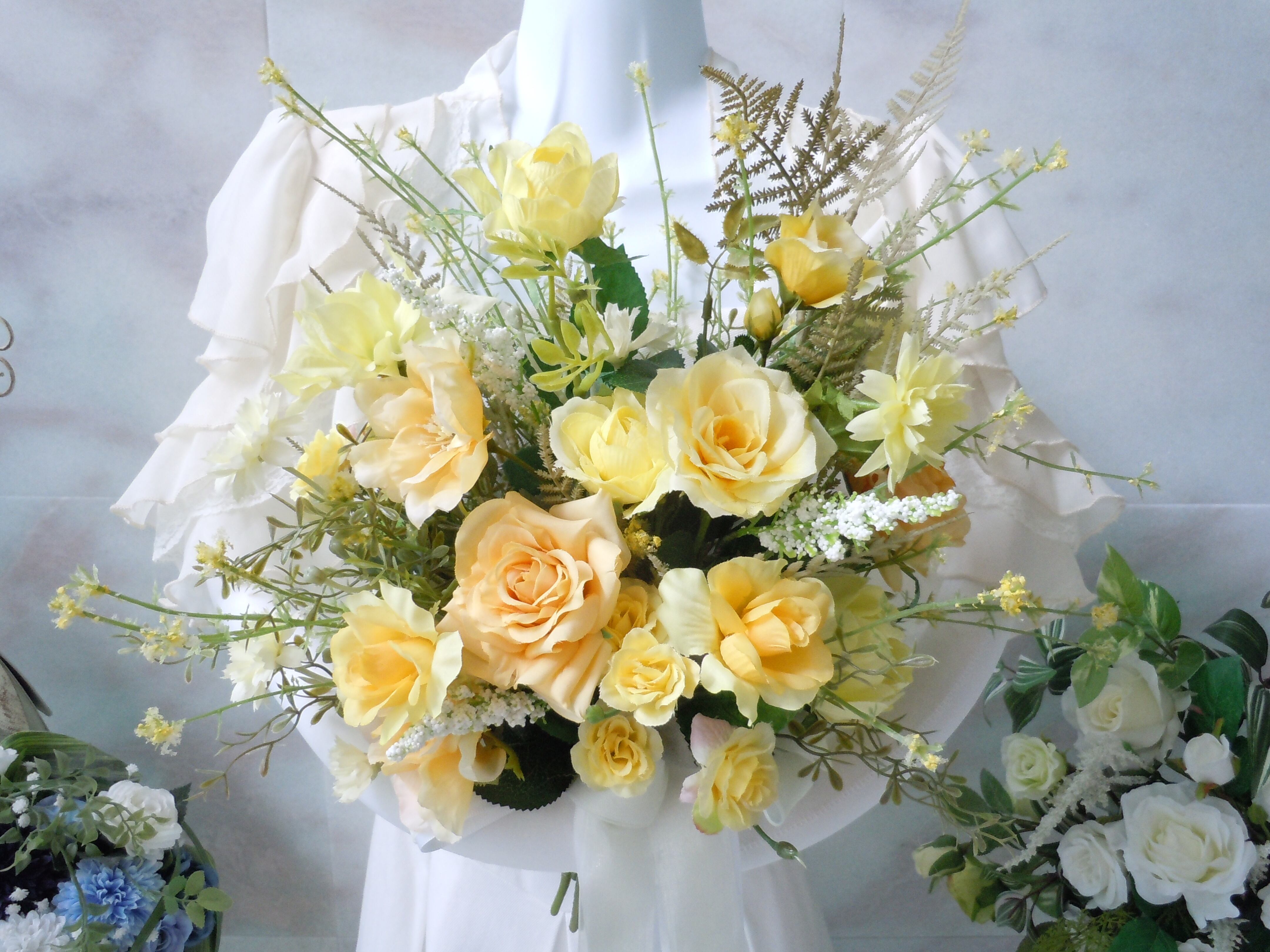 SALE セール 特価中◆華やか*イエローカラーのクラッチブーケ*ウエディングブーケ◆ナチュラルブーケ イエローブーケ 前撮り 花束 フラワーアレンジ 黄色*アートフラワー | blue flower