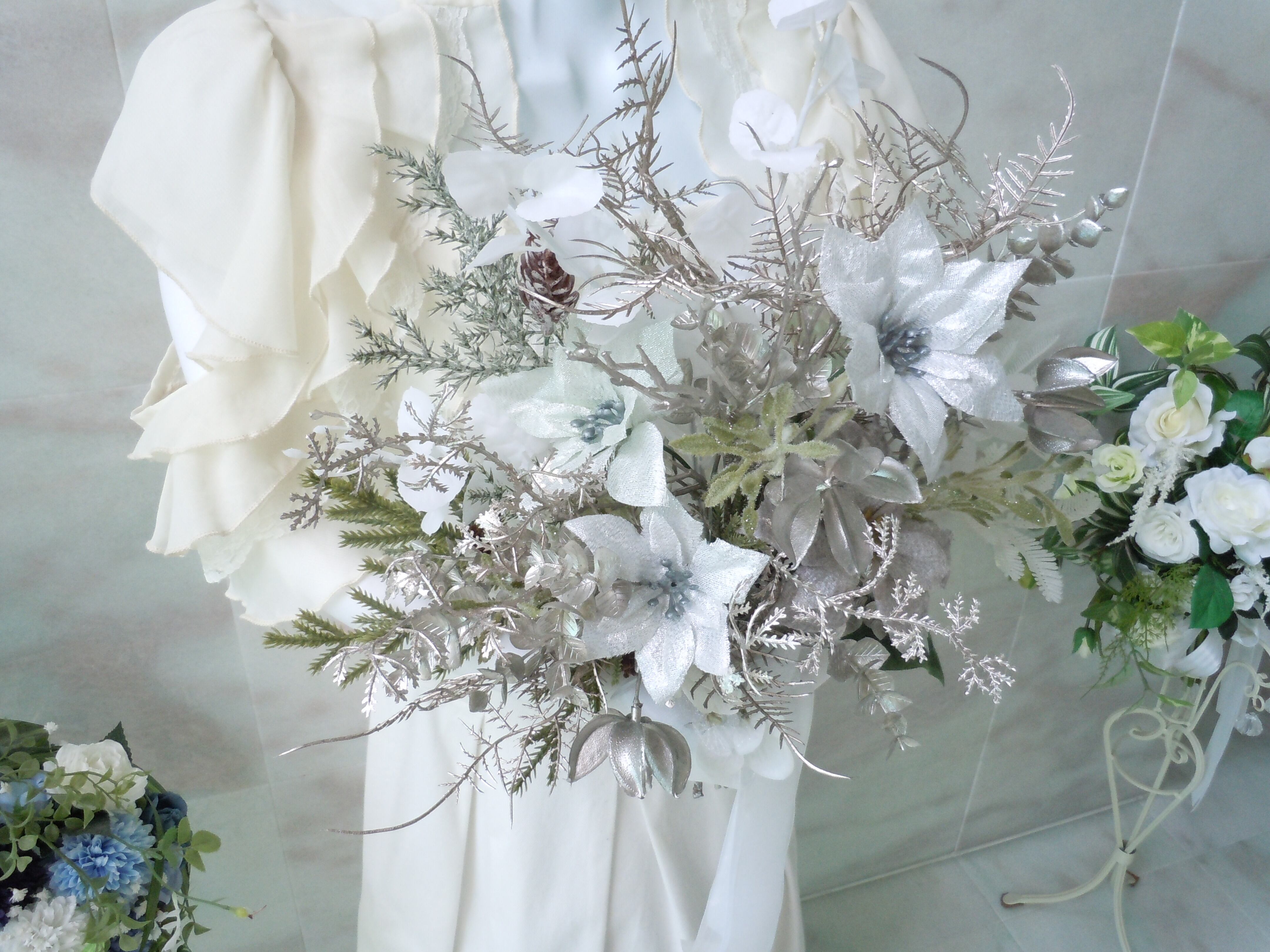 ◆クリスマスのクラッチブーケ*シルバー◆クリスマスブーケ シルバーブーケ ウインターブーケ ウエディングブーケ 前撮り ポインセチア
